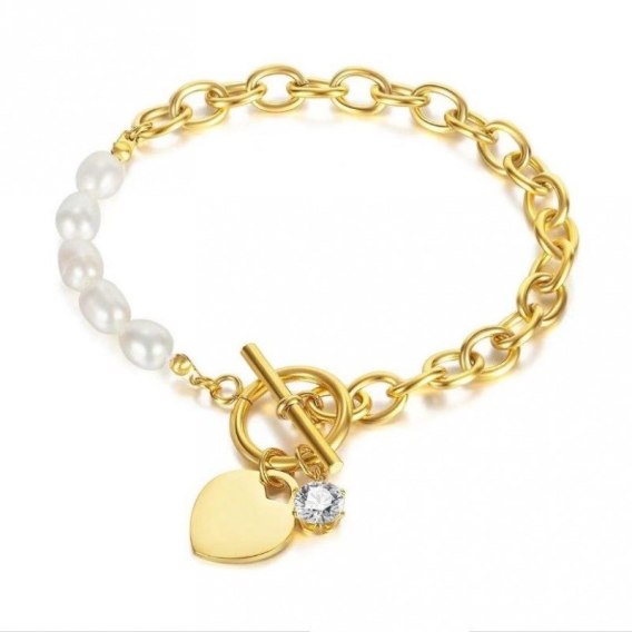 Bransoletka na rękę stal chirurgiczna pozłacana 14k złotem, PEREŁKI