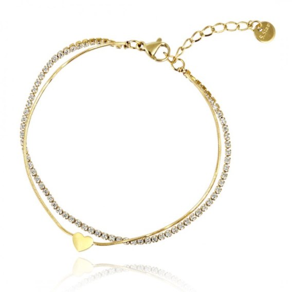 Bransoletka na rękę stal chirurgiczna pozłacana 14k złotem, podwójna, cyrkonie