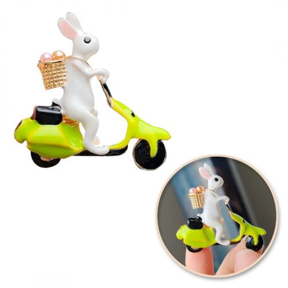 Broszka ozdobna króliczek z jajeczkami na skuterze