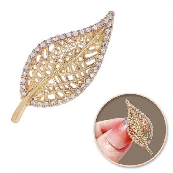 Broszka ozdobna - liść z cyrkoniami