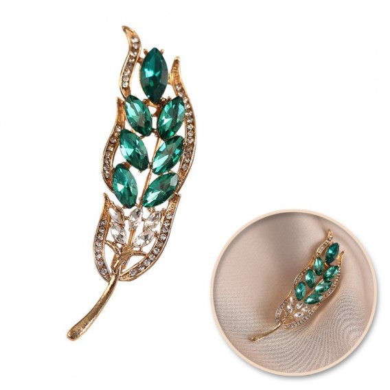 Broszka ozdobna - zielony kłos z cyrkoniami