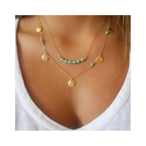 Naszyjnik delikatny podwójny celebrytka z turkusem