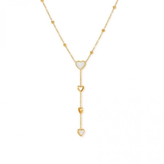 Naszyjnik stal szlachetna pozłacana 14k złotem, zwisający, serca masa perłowa