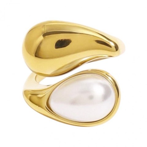 Pierścionek stal chirurgiczna platerowana złotem regulowany, R6, R7 PERŁA KROPLA PST946